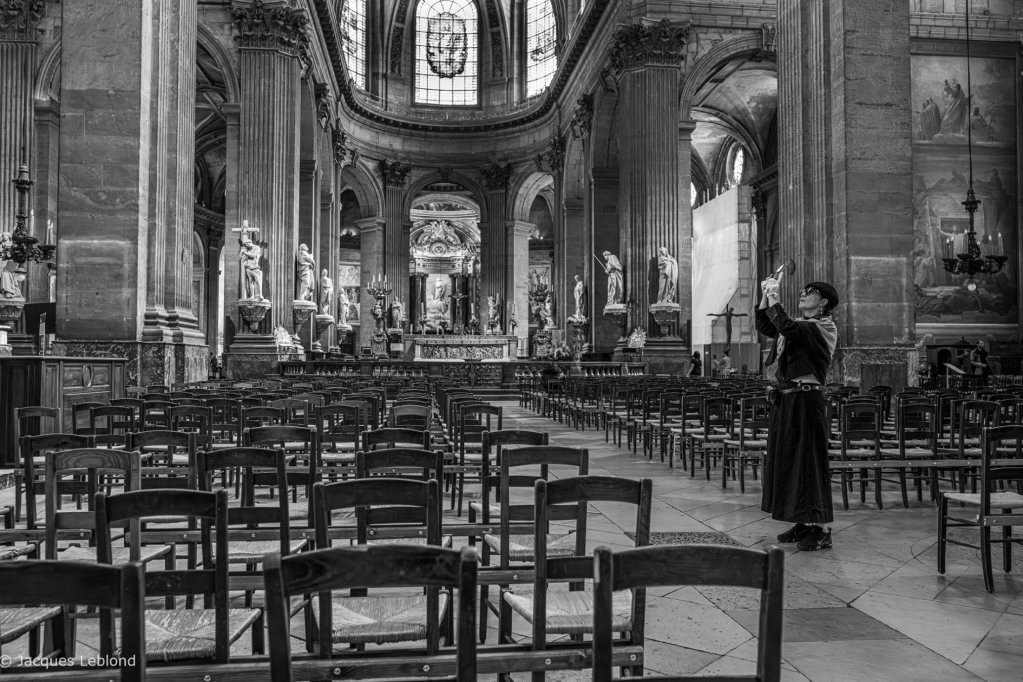 […] tout m’intrigue chez cette personne debout dans l’église Saint-Sulpice :